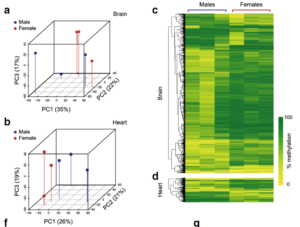 used DNA methylation patterns from multiple tissues of isogenic male and female mice. Using this model the authors were able to identify “thousands of sexually dimorphic loci”, which they report to be “largely autonomous to each tissue”. The paper reveals that sex influences methylation patterns in a tissue-specific manner and therefore suggests that at least some of the phenotypes that carry gender bias are derived from gender differences in underlying epigenetic states. For full text by McCormick et al., see – https://bmcgenomics.biomedcentral.com/articles/10.1186/s12864-017-4350-x
